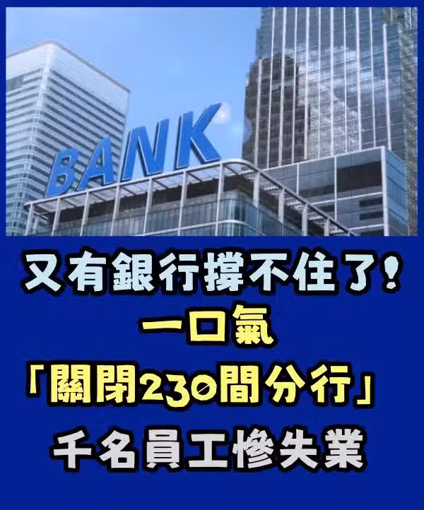 又有銀行撐不住了!一口氣「關閉230間分行」 千名員工慘失業