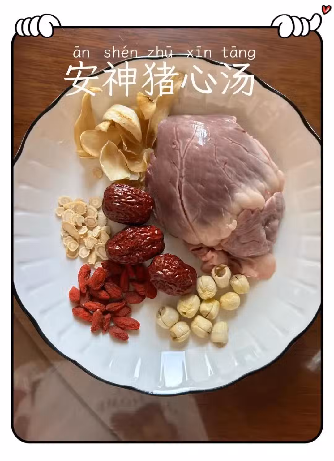3. 燉煮:將豬心、百合、西洋參、紅棗、蓮子一起放入燉盅或湯鍋中,加入適量清水,大火煮開後轉小火燉煮1.5小時。