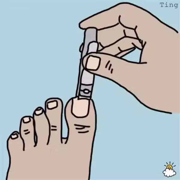 使用過氧化氫或酒精消毒,並放在指甲邊緣尚未長進肉里的部位。