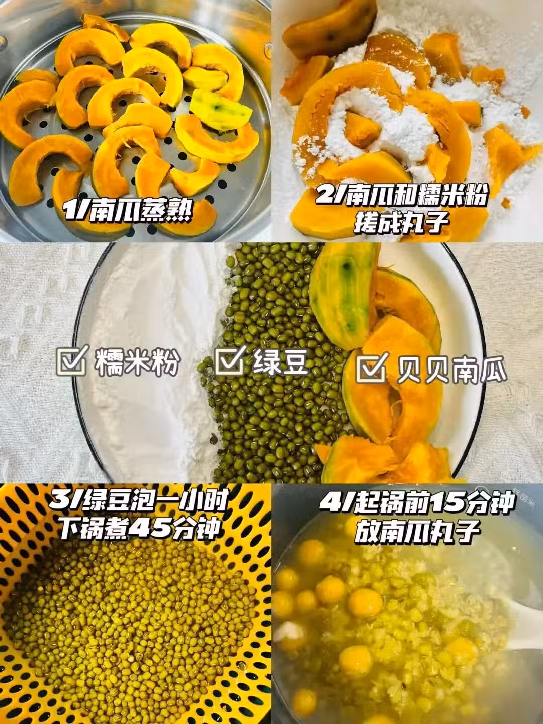 +綠豆100g+南瓜100g+糯米粉50g+土冰糖適量