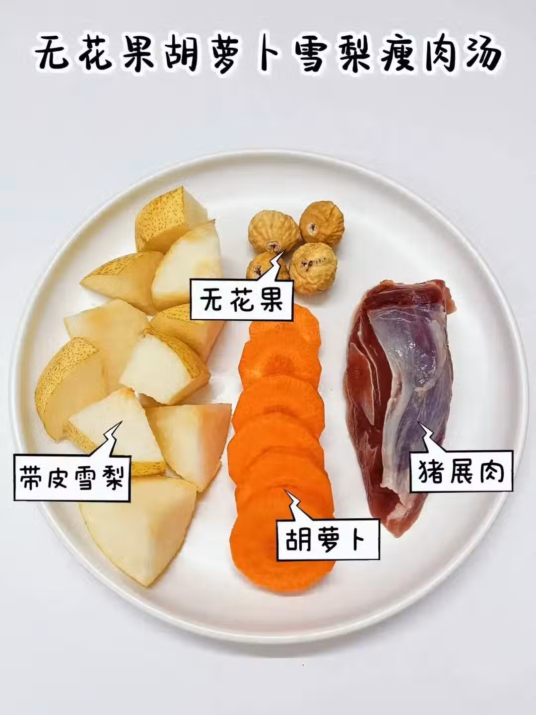 食材準備:雪梨➕瘦肉➕胡蘿蔔➕無花果