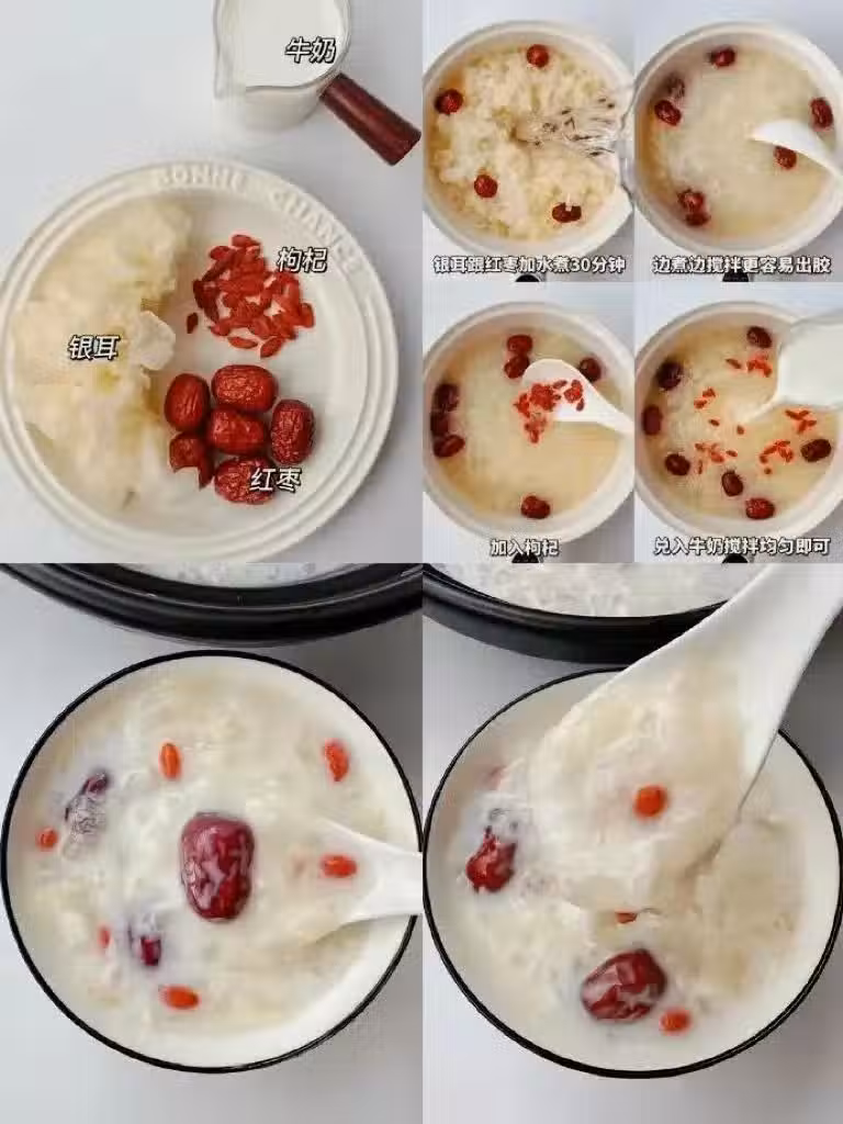 1. 銀耳跟紅棗加入水煮30分鐘,變煮邊攪拌更容易出膠