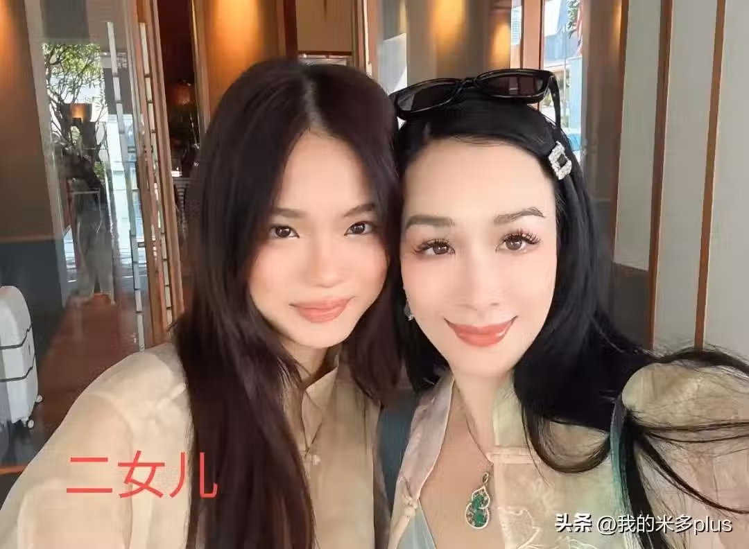 後面休息好了,鍾麗緹和兩個女兒分別同框自拍,這時候就能感受到美貌遺傳的意義了,倆孩子都是青出於藍勝於藍的外形。