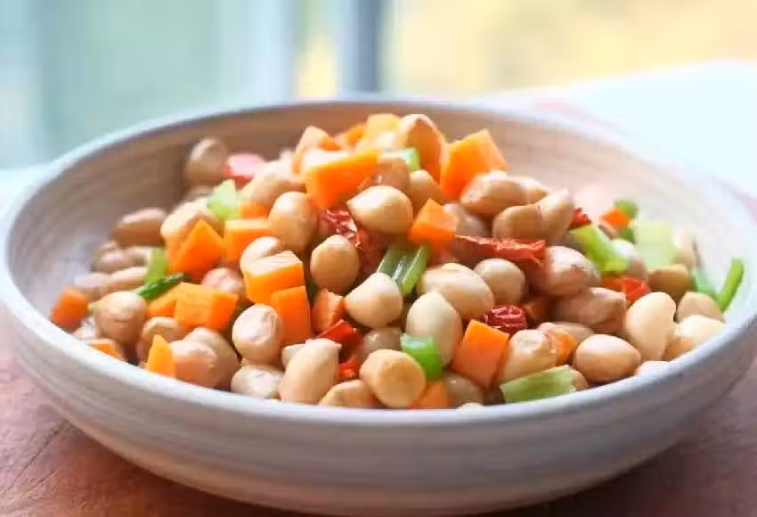 4、倒入高壓鍋中放入桂皮,香葉八角,干辣椒,山楂,蔥姜、開水沒過肉,高壓鍋煮40分鐘
