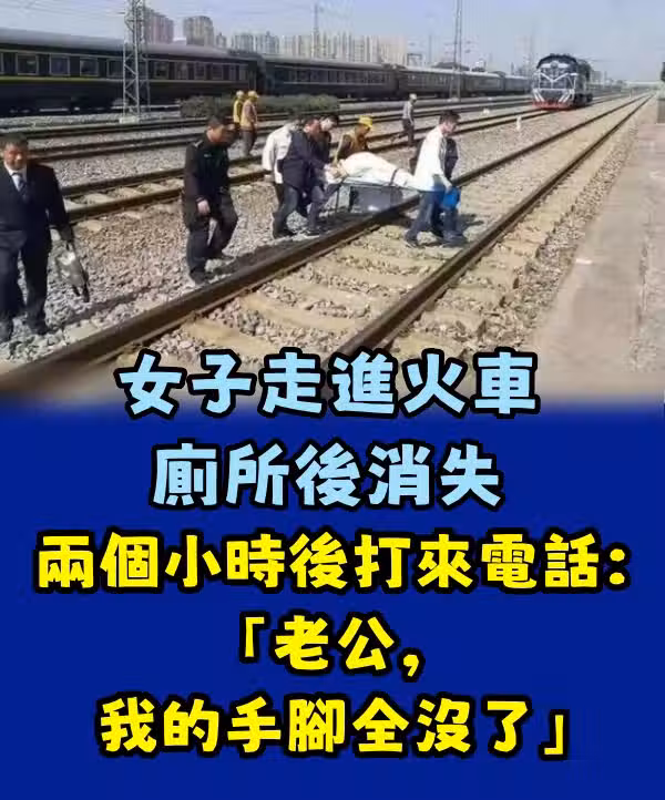 女子走進火車廁所後消失,兩個小時後打來電話: 「老公,我的手腳全沒了」