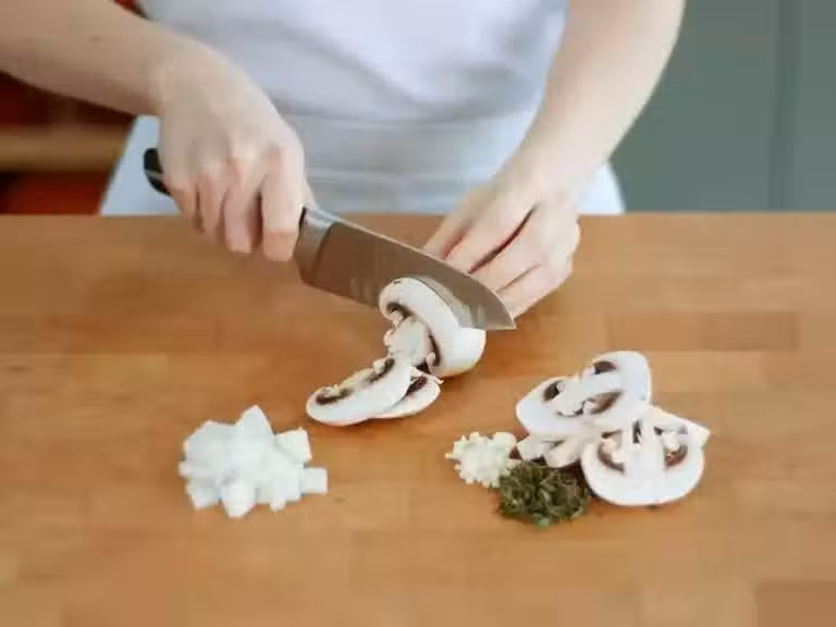 1 湯匙 新鮮百里香葉(多取一些,用於裝飾)和百里香細細切碎,蘑菇切片。