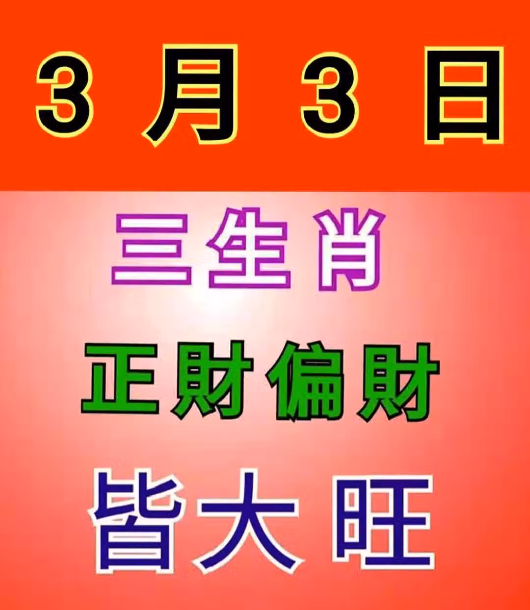 3月3日 三生肖 「 正財偏財 」 皆大旺。