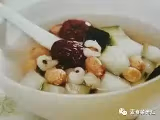 材料:冬瓜1斤,蜜棗5個,花生仁3兩,圓肉3錢,大薏仁1兩