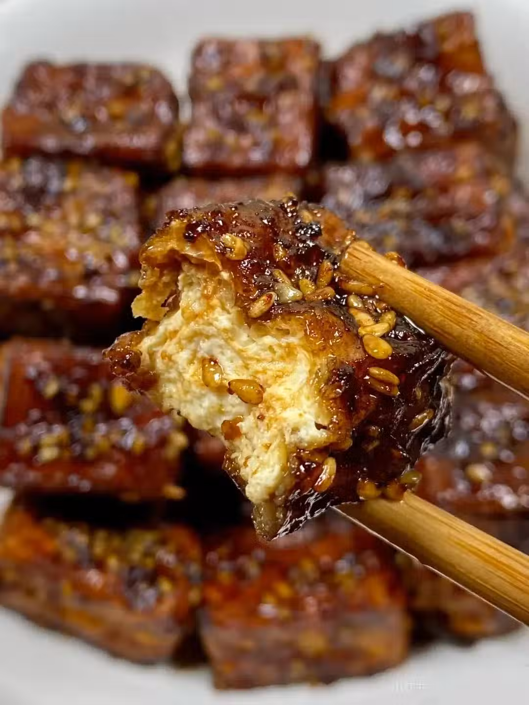 鍋中倒入足量油,待油溫升高後,將豆腐塊裹上一層薄薄的澱粉,輕輕放入鍋中,小火慢煎。煎至一面金黃後,翻面繼續煎,直到兩面都呈現出誘人的金黃色。