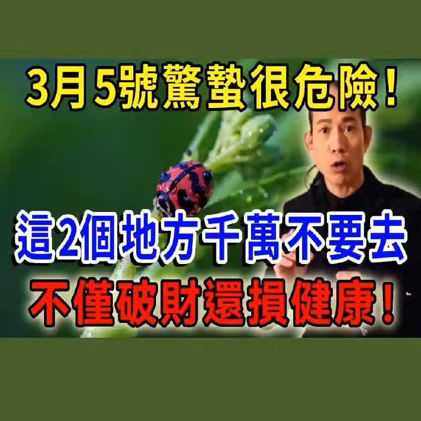 「驚蟄」是陽氣升騰的日子,但醫院、喪家、墓地這類場所陰氣極重,此時去這些地方,容易吸收負能量,影響個人運勢與健康!
