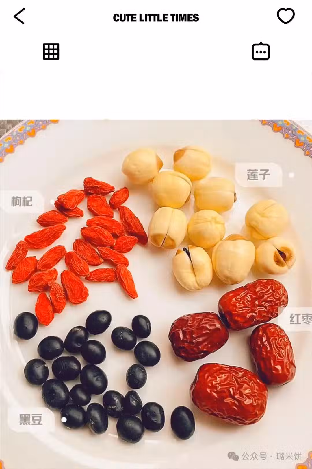 黑豆30g,蓮子(帶心)10顆,紅棗4顆去核,枸杞一小把