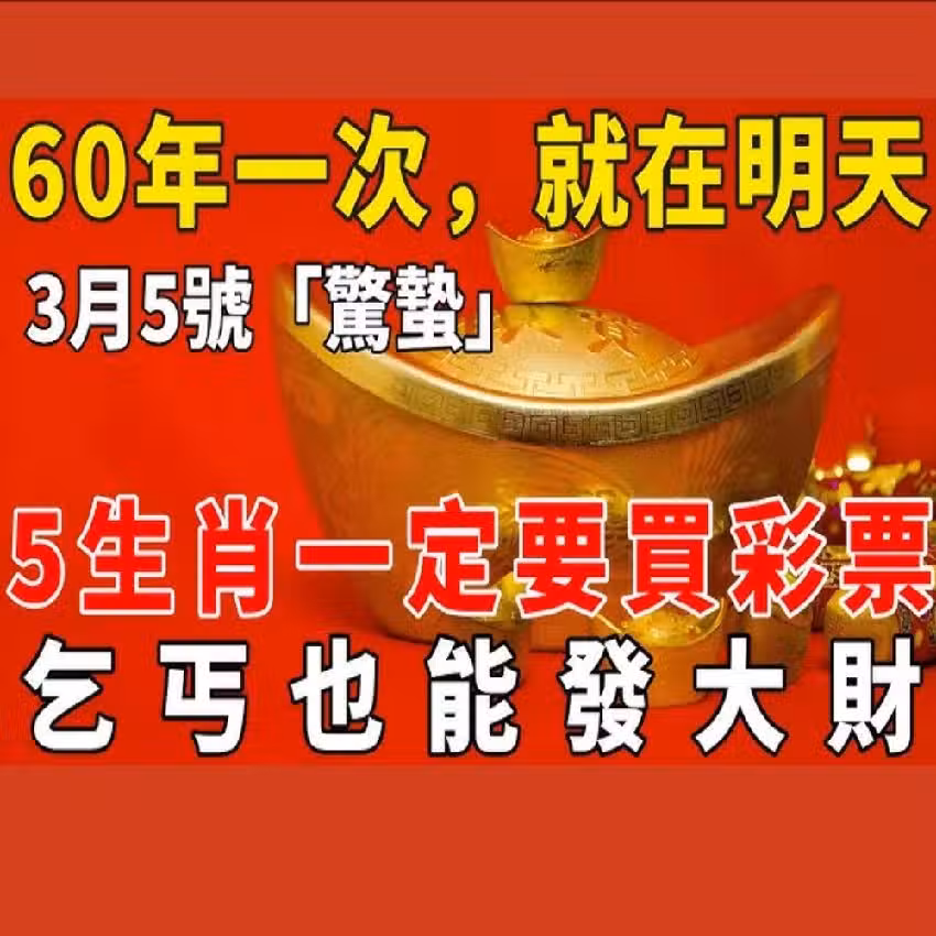 💰 60年一次!2025年3月5日「驚蟄」,這 5 個生肖一定要買彩票,乞丐也能發大財!