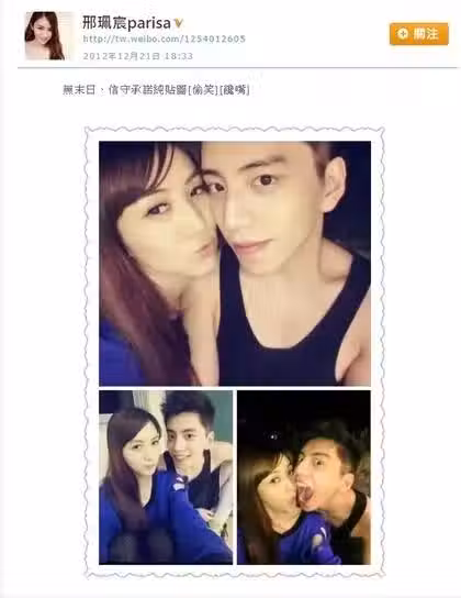 ▲王大陸曾與刑珮宸交往,卻遭到父親反對。(圖/翻攝自微博)