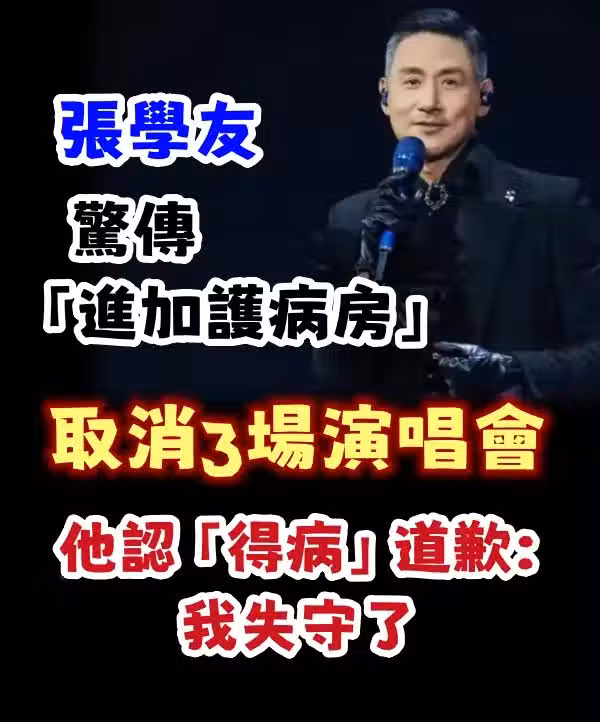 然而,張學友驚傳身體出狀況,將3場演唱會取消,網上瘋傳他得了重病,住進加護病房,本人也親自回應了!