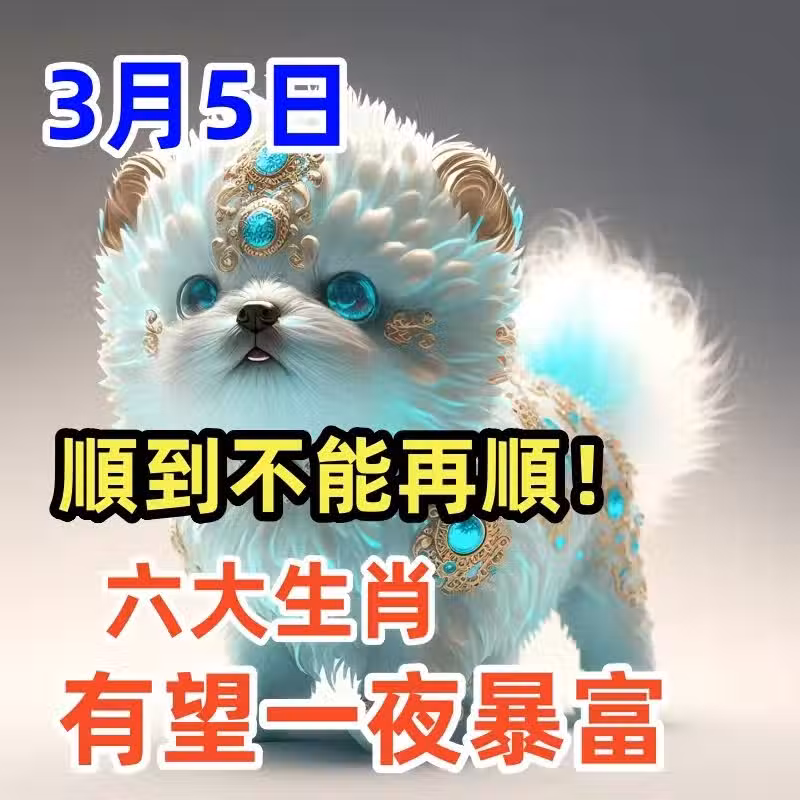 從一些傳統的生肖運勢說法來看,3 月 5 日有望順風順水、一夜暴富的 6 大生肖可能包括鼠、龍、馬、豬、兔、猴,以下是具體分析