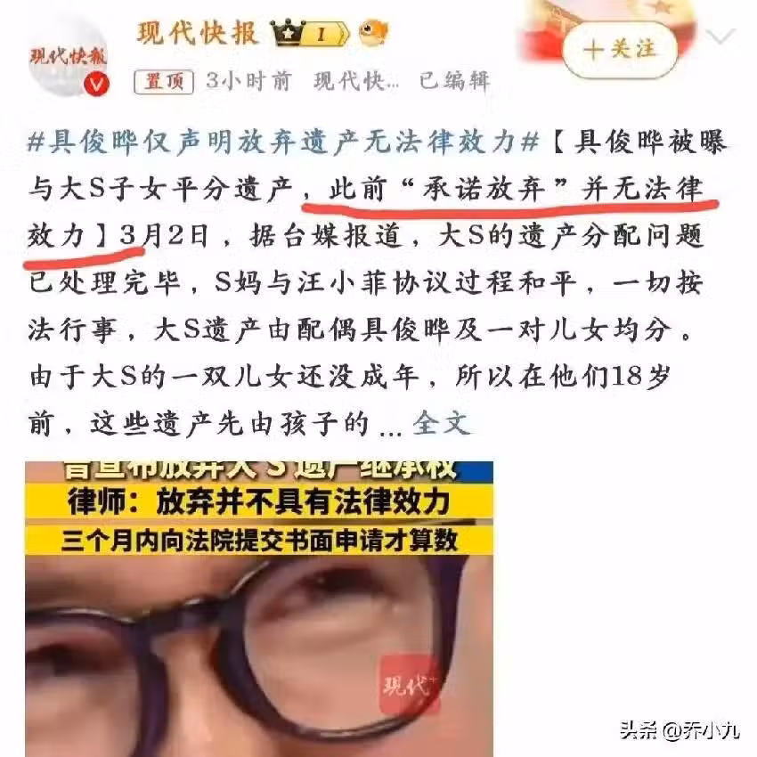 具俊曄此前的「承諾放棄」遺產並無法律效力。