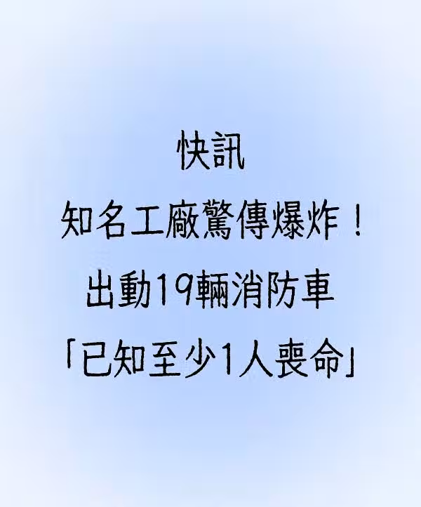 快訊/知名工廠驚傳爆炸!出動19輛消防車「已知至少1人喪命」