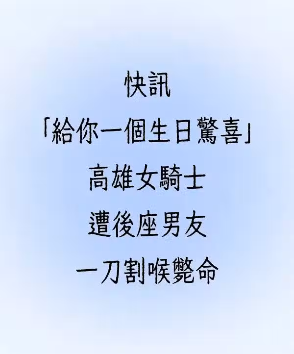 「給你生日驚喜!」高雄女騎士遭后座男友一刀割喉斃.命