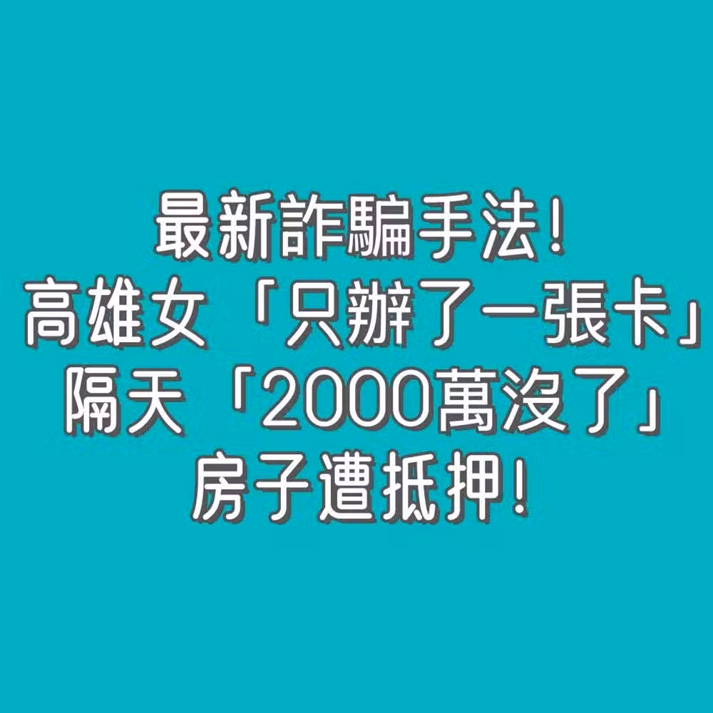 最新詐騙手法!高雄女「只辦了一張卡」...隔天「2000萬沒了」房子遭抵押