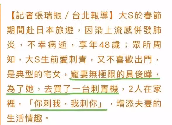 網友吐槽:大S都過世了,刺青機還要再吹一遍,這不是在逼人表態嗎?