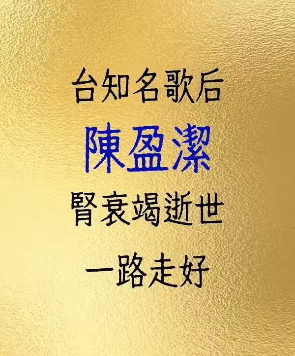 台知名歌后陳盈潔 腎衰竭逝世 一路走好