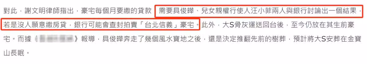 第三,豪宅房貸也要承擔。就像上面說的,拿了遺產自然也要承擔責任,作為大S的老公,具俊曄難道要大S故居還不起房貸被法拍嗎?
