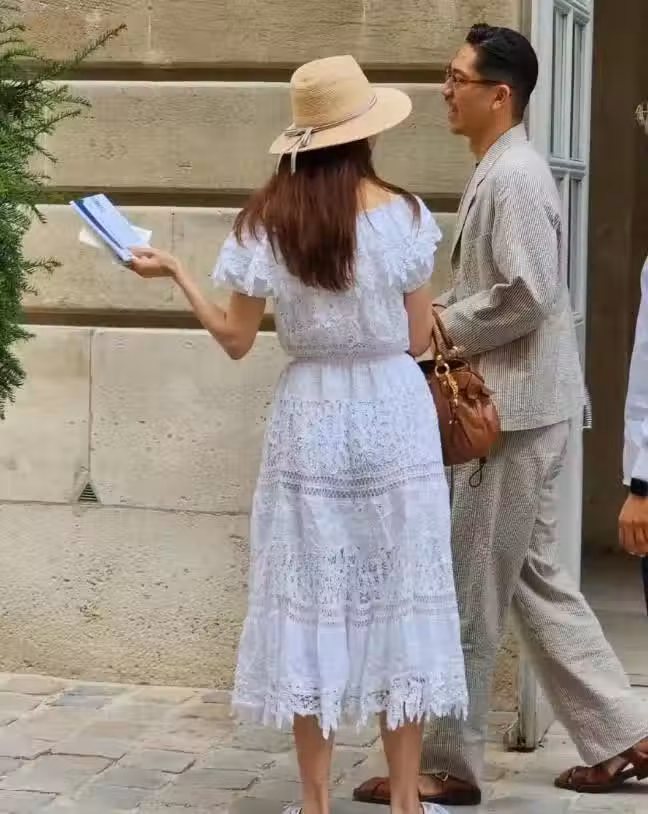 法國羅浮宮偶遇林志玲,穿長款黑皮衣又高又瘦,像模特一樣好漂亮