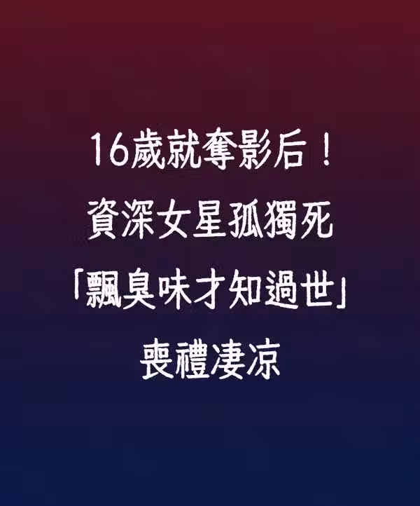 16歲就奪影后!資深女星孤獨死「飄臭味才知過世」喪禮淒涼