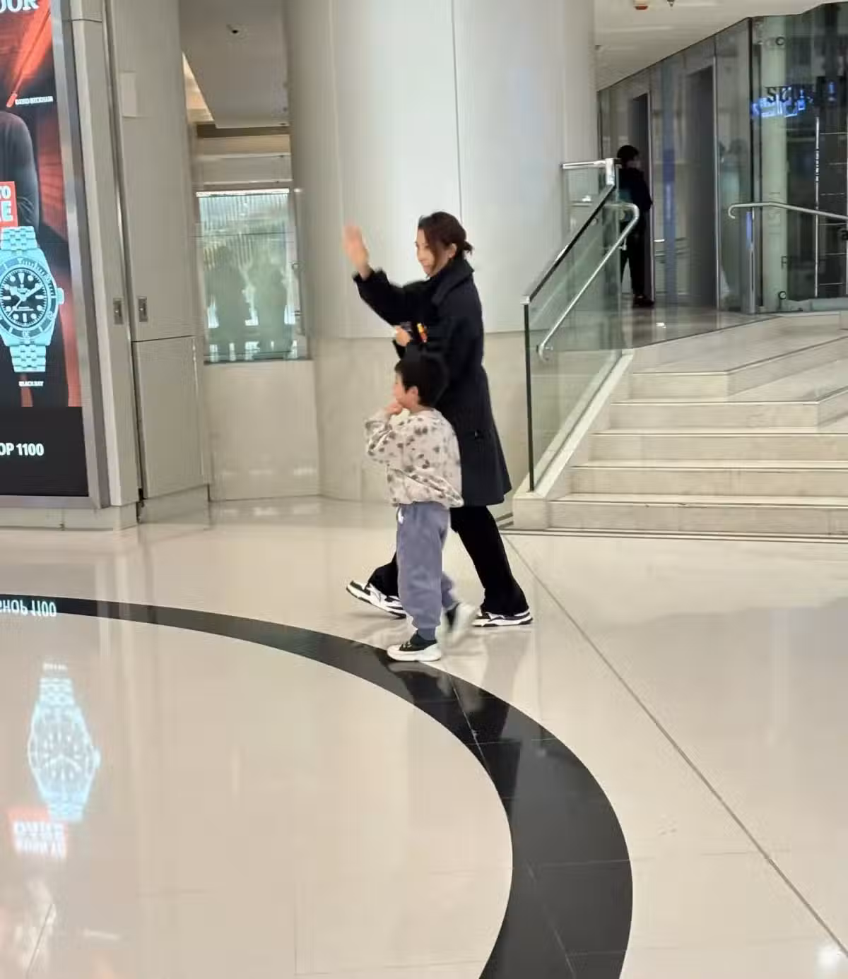 52歲蔡少芬香港西九龍逛商場,一邊牽著兒子,一邊和女兒聊天,畫面非常溫馨