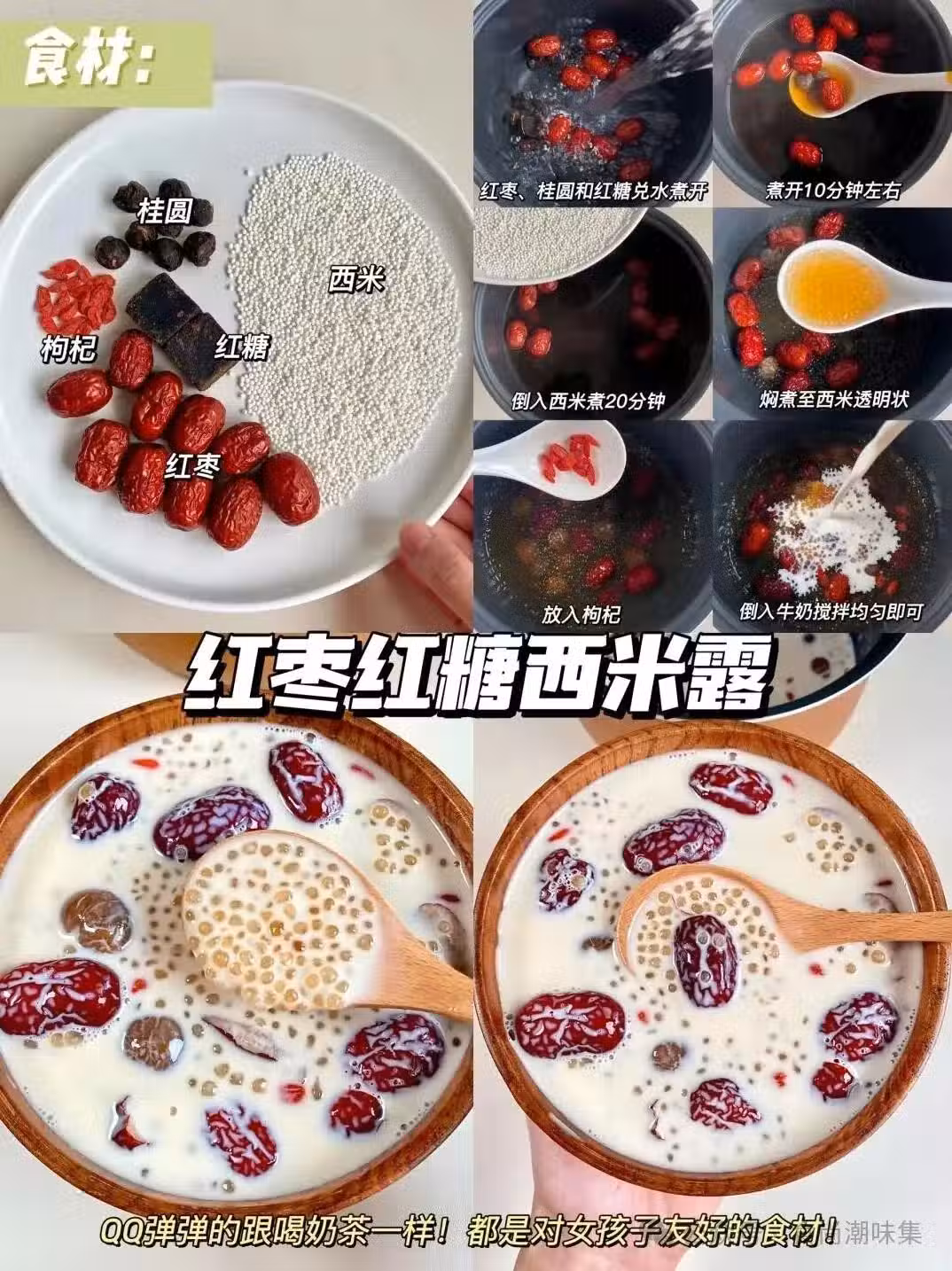 1.食材:西米50克、紅棗5顆、紅糖適量。