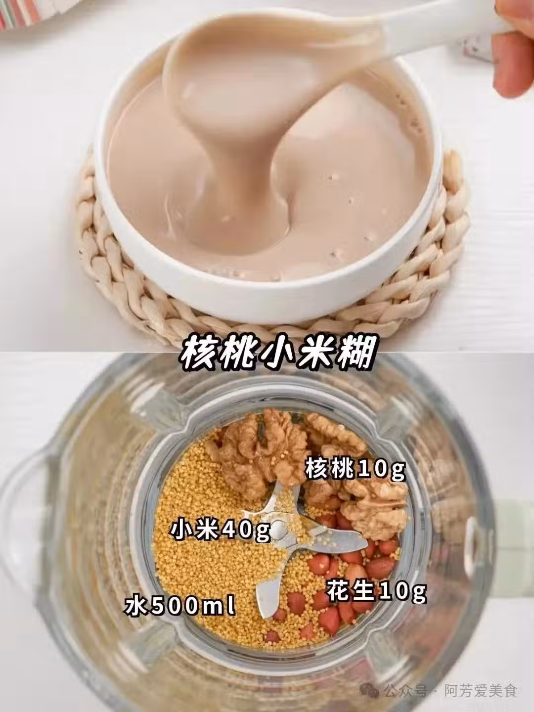 核桃小米糊,這款的味道非常的濃稠,香甜濃郁,核桃散發出來的獨特香氣,還有花生的香味,混合在一起很濃稠還很好喝。
