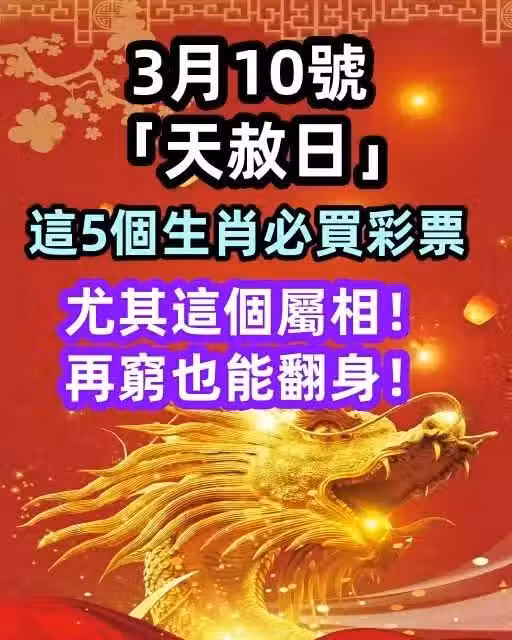 3月10號「天赦日」這5個生肖必買彩票,尤其這個屬相!再窮也能翻身!