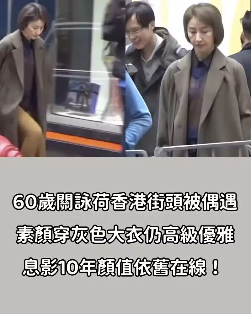 60歲關詠荷香港街頭被偶遇,素顏穿灰色大衣仍高級優雅,息影10年顏值依舊在線!