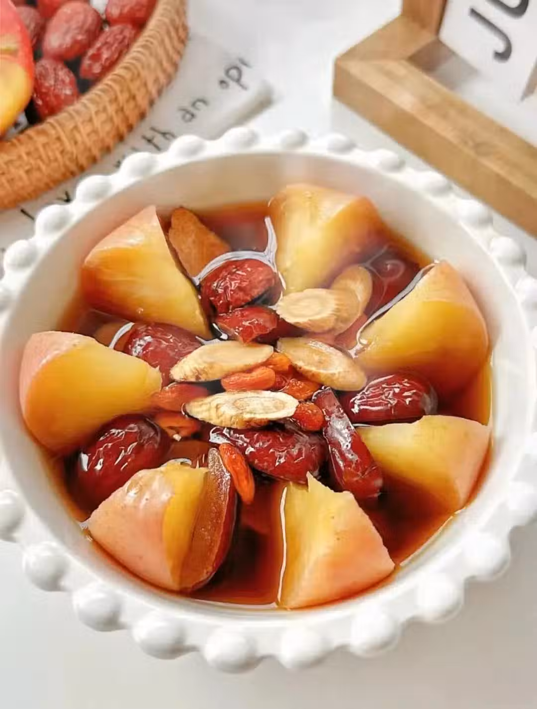 養生又健脾胃、蘋果富含果膠,健脾助消化,加上紅棗養血、黃芪補氣、枸杞養肝腎、滋養脾胃、補氣養血全齊活了。