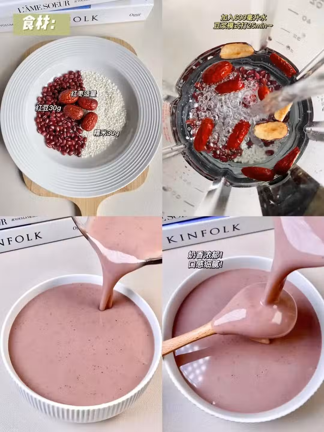 1️⃣紅豆、糯米、紅棗去核和冰糖,兌水倒入破壁機