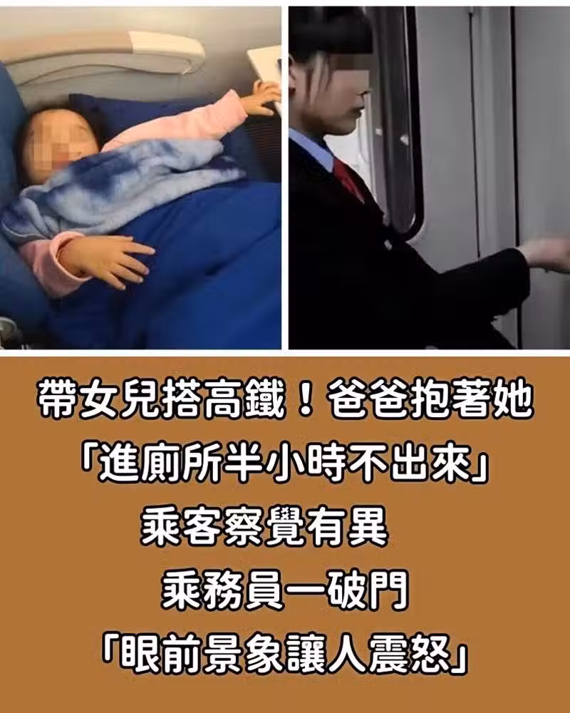 帶女兒搭區間車!爸爸抱著她「進廁所半小時不出來」乘客察覺有異 乘務員一破門「眼前景象讓人震怒」