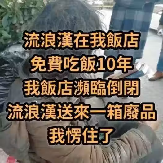 流浪漢在我飯店免費吃飯 10 年,當店面瀕臨倒閉時,他卻送來一箱「廢品」……打開後我瞬間愣住,眼眶也濕了