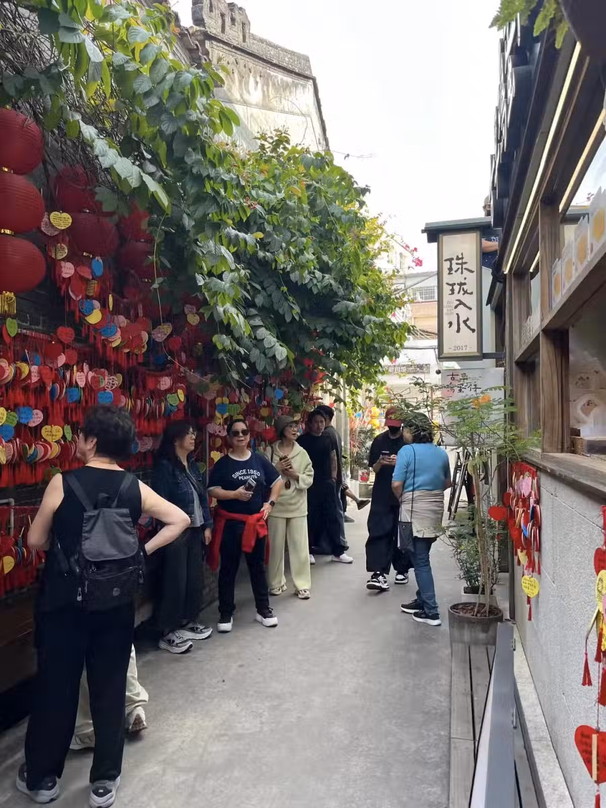 蔡少芬現身珠海,頂著烈日逛街,排隊買雞蛋仔,被老闆大讚性格好