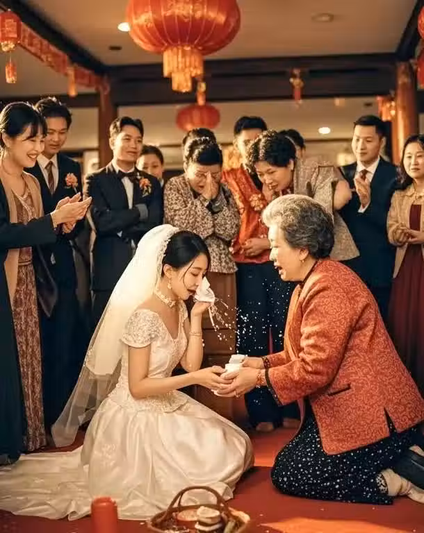 新娘敬茶時被婆婆潑卸妝水,她當眾擦掉半張臉,全場親戚突然集體下跪