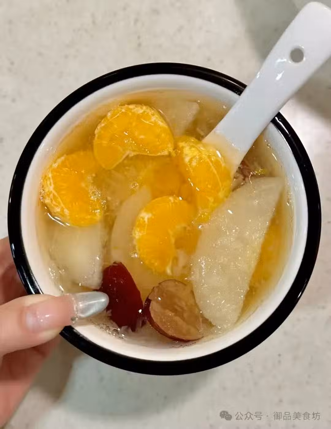 食材:銀耳、雪梨、橘子(去皮保留橘絡)、紅棗、冰糖。