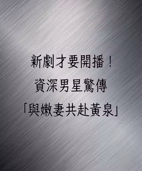 新劇才要開播!資深男星驚傳「與嫩妻共赴黃泉」