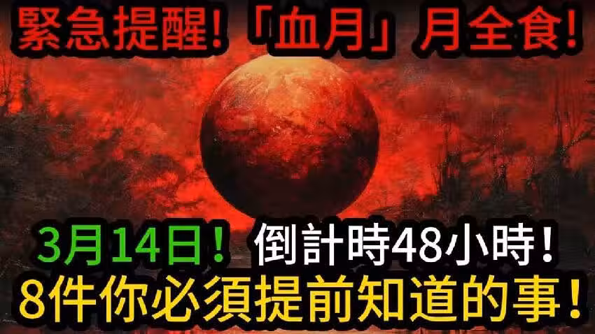 3月14日!倒計時48小時!「血月」月全食緊急提醒,8件你必須提前知道的事。