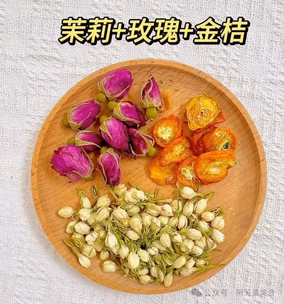 茉莉和金桔還有玫瑰,這款特別適合在大餐後來喝上一杯,金桔的酸甜可口,連皮一起泡煮開來,果香四處飄散,喝起來也是很爽口。
