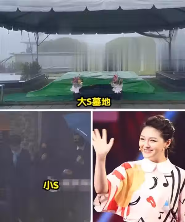 3月15日,大S葬禮在台灣金寶山舉行,可能上天也為大S落淚,現場大雨傾盆,家人撐傘相送,台媒曝光了大S的墓地,用綠色雨布遮擋,左右有兩束鮮花,環境優雅寂靜,一代美容女王以這種方式與世界告別,令人唏噓。
