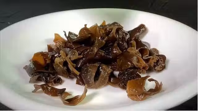 3.將切好的苦瓜放入鍋中汆燙1分鐘,然後撈出控水備用。木耳也加進來汆燙1分鐘,煮熟後和洋蔥、苦瓜、花生米一起放到碗中。
