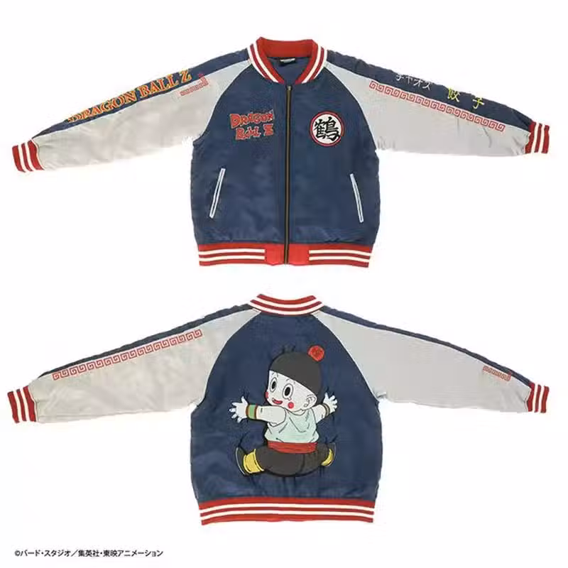 那麼今天分享的這款外套就是剛剛提到的絲卡將,然後主要刺繡設計圖案是七龍珠這部作品中的餃子,本款外套的特色就是重現了動畫中的經典場景,並且以精緻的刺繡跟高級質感為特色,推薦給喜歡「七龍珠」這部作品的朋友