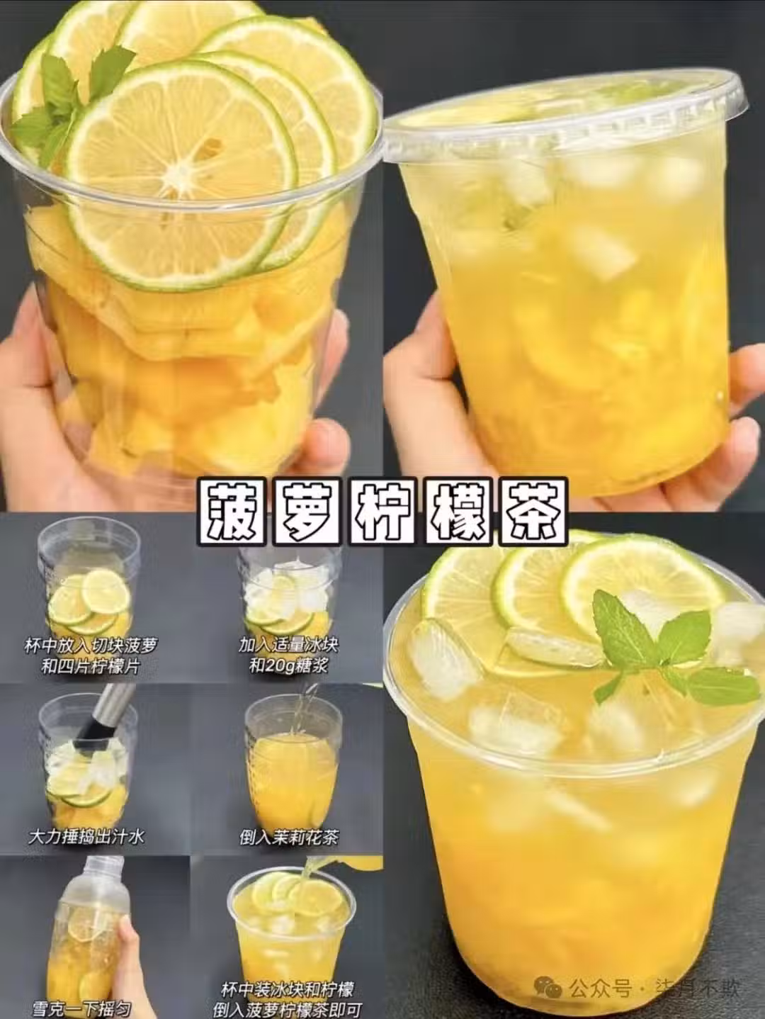 8️⃣夏日午後,來一杯青提冰茉莉! 將青提去皮,與檸檬一起大力搗出汁水,倒入清香的茉莉花茶,雪克均勻後倒入滿是冰塊的杯中,再用檸檬片和青提點綴 。清新的綠,酸甜的味,茶香與果香交織,每一口都冰爽解膩,趕走夏日疲憊。