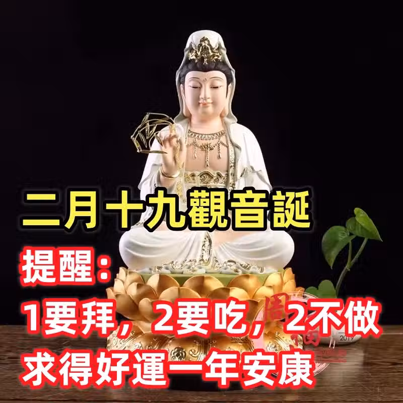 二月十九觀音誕,提醒:1要拜,2要吃,2不做,求得好運一年安康
