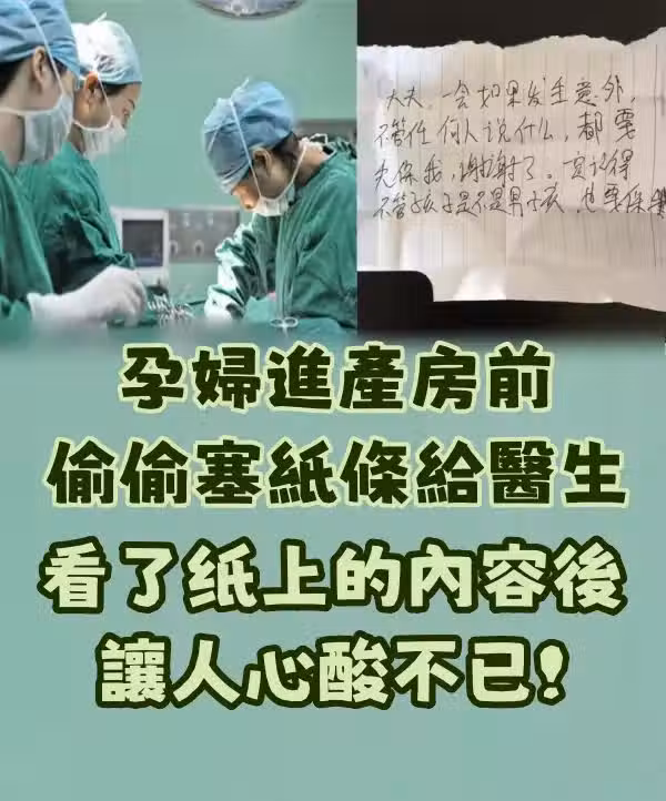 孕婦進產房前偷偷塞紙條給醫生,看了上面的內容後讓人心酸不已!