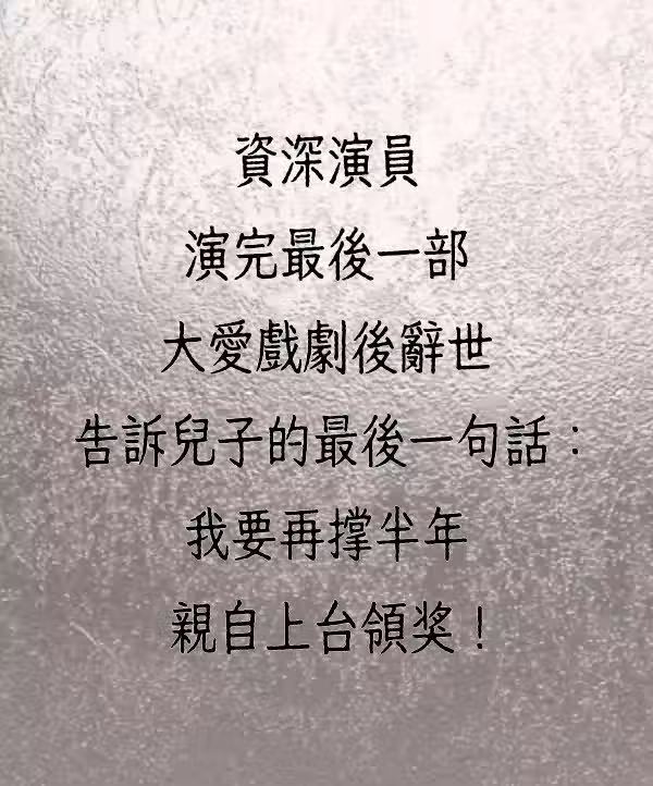 台資深演員演完最後一部大愛戲劇後辭世,告訴兒子的最後一句話:我要再撐半年,親自上台領獎!